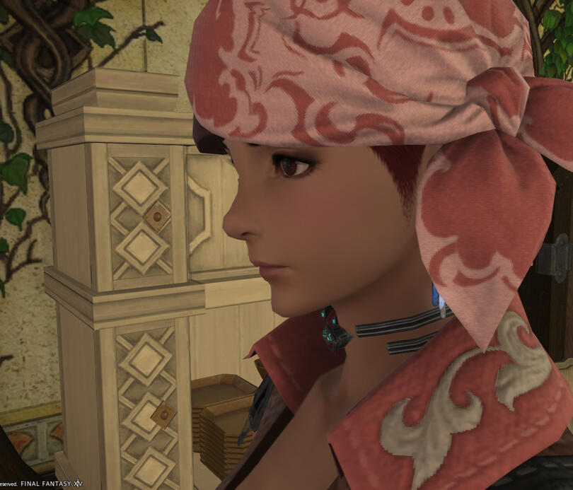 Abbie is color blind and pink is probably one of the few colors she sees clearly. She loves to sew and make little things, she cooks fairly decent meals, with the exception of fish, and her favorite hobby is reading tomes. Sometimes she will write her own stories about life’s adventures, but usually, it is about her nightmares.Abbie's family's secrets and what she witnessed at home would sometimes trouble her at night. Abbie's father had lost his mind in the military after many years of fighting in battles. Abbie's father decided one day that he had had enough of the military life, killing and shite, so he broke into his captain's quarters and destroyed every piece of furniture inside. They could not prove it was Abbie's father but for some reason, he had the same picture at home as the captain had in his office that was now missing. No grunt would have the gil to afford such an expensive piece. Abbie's father lied to them and got away with it since Abbie's mother was one of the best weavers in the city; she turned a fine profit from her garments and fine clothes. Abbie's mother lied to the captain and said she bought it off a merchant in Gridania. Abbie's father went on to become a thief, robbing businesses and other wealthy people and bringing those stolen items back to their house. So Abbie and her mother learned how to sell those items on the black market.As for Abbie being a bit color blind which affected her ability to match colors as a seamstress, she developed a talent for selling goods but still loves to weave cloth. Thus she meets other merchants and traders and learned where she could pawn, trade, and move items without getting too noticed since she was already well to do.